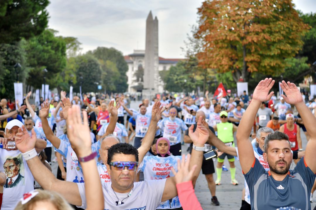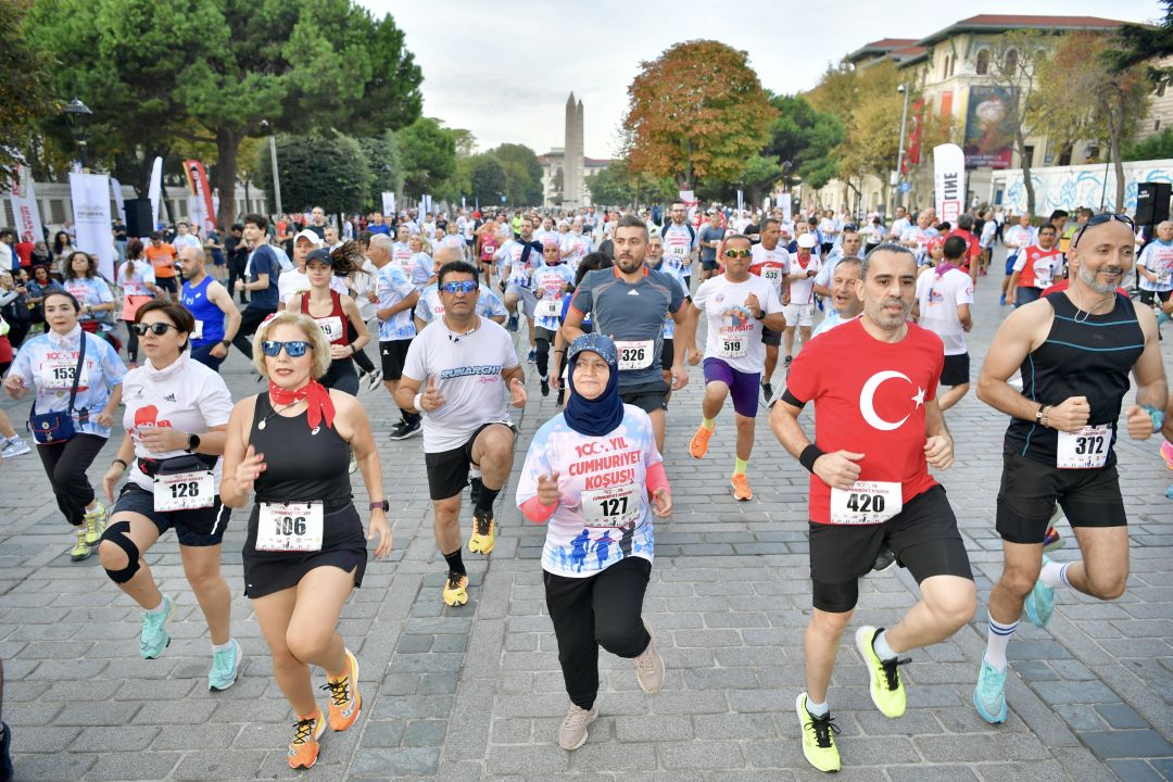 Cumhuriyet’in kuruluşunun 100. yıl dönümü dolayısıyla Fatih Belediyesi ve Türkiye Atletizm Federasyonu iş birliği ile düzenlenen “100. Yıl Cumhuriyet Koşusu”nda, 700 katılımcı dereceye girmek için mücadele etti.